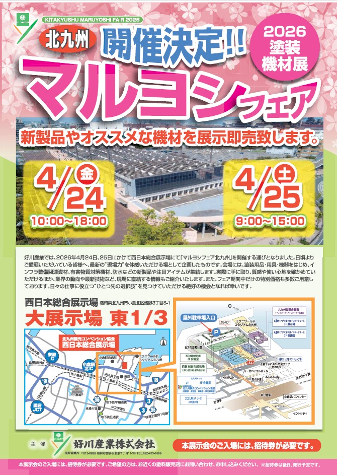 建築・防水・工業・重防食塗装に関する商品を多数出品!ご入場には招待券が必要です。ご希望の方はお近くの塗装販売店にお問い合わせ、申し込みください。※招待券は後日発行予定です。