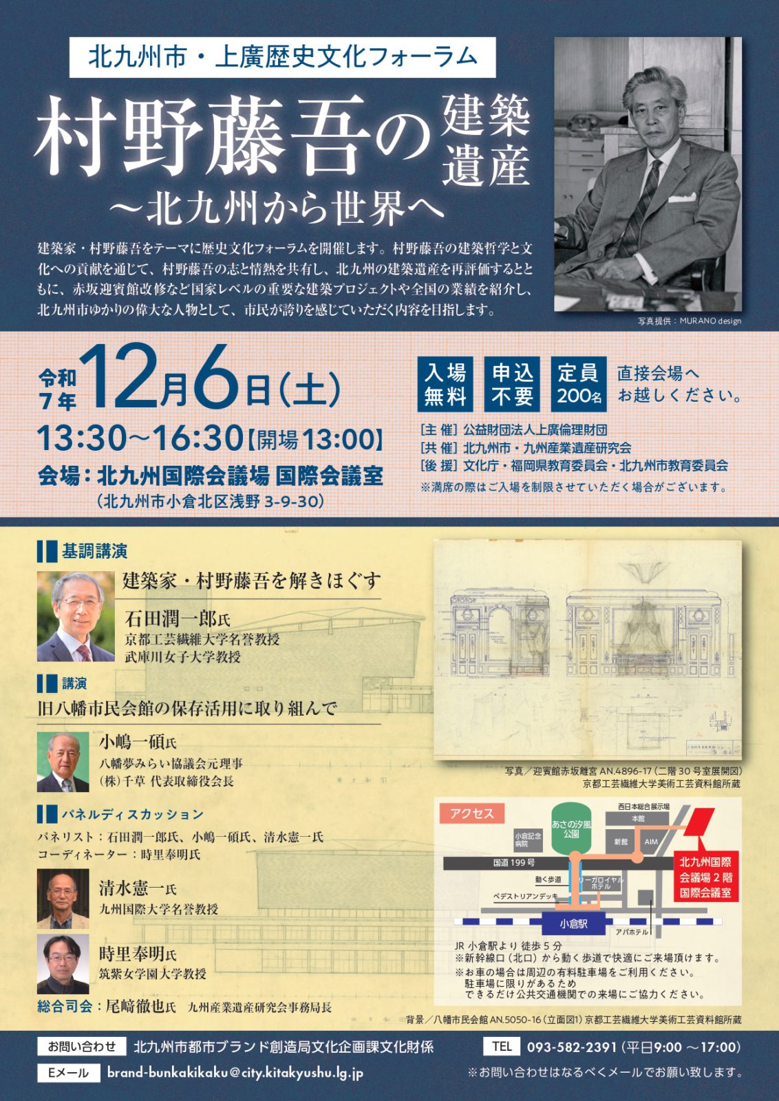 北九州市・上廣歴史文化フォーラム「村野藤吾の建築遺産~北九州から世界へ」