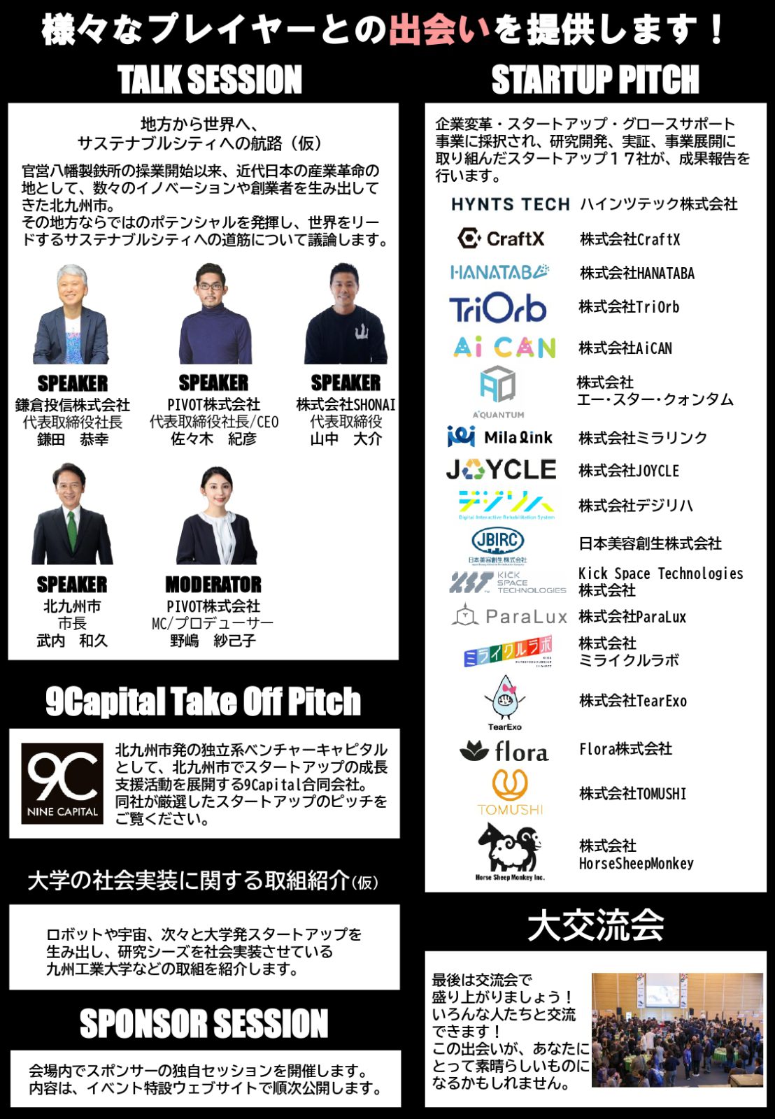 内 容:トークセッションやスタートアップピッチ、ブース展示、交流会等