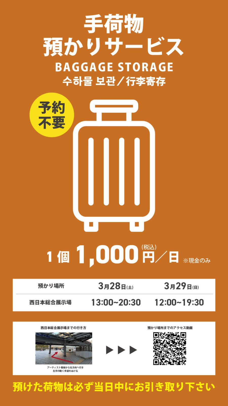 3/28(土)・29(日) コンサート会期中の西日本総合展示場臨時手荷物預かり所について