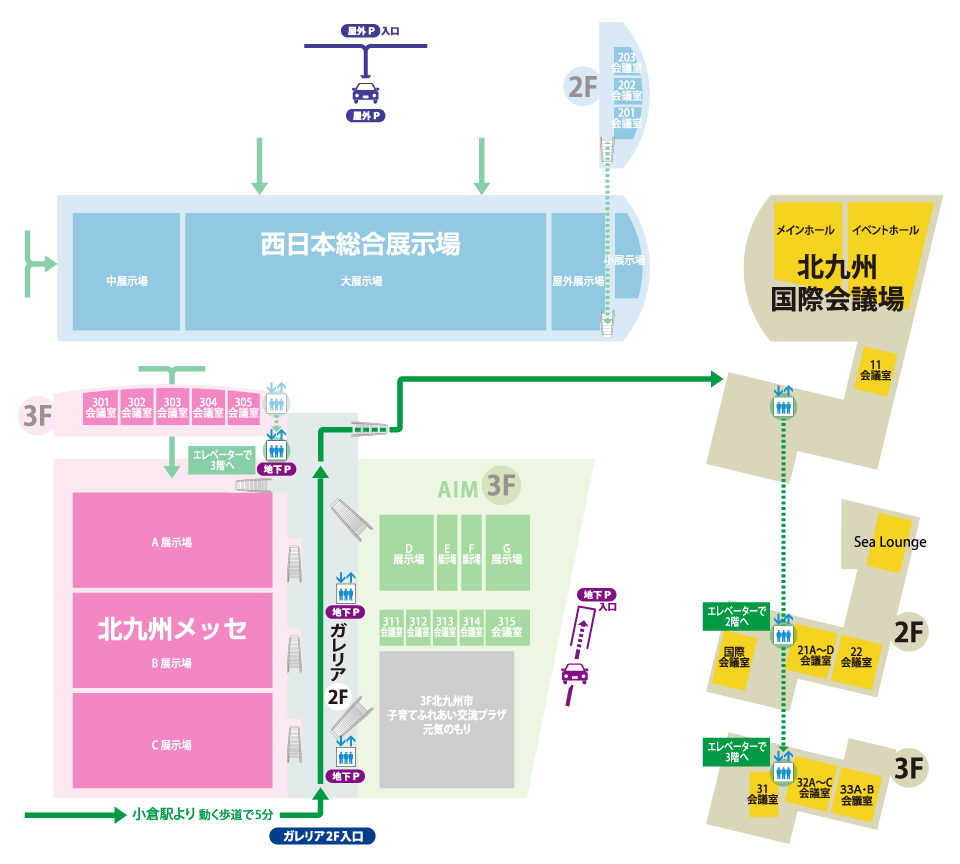 北九州市は、水辺と緑とふれあいの国際テクノロジー都市を目指し、21世紀を迎えて、さらなる飛躍を遂げようとしています。そのために必要なコンベンション機能をリードする中枢施設として1990年10月に完成したのが「北九州国際会議場」です。 隣接する展示場施設との連動で、そのコンベンション機能は無限に拡がります。